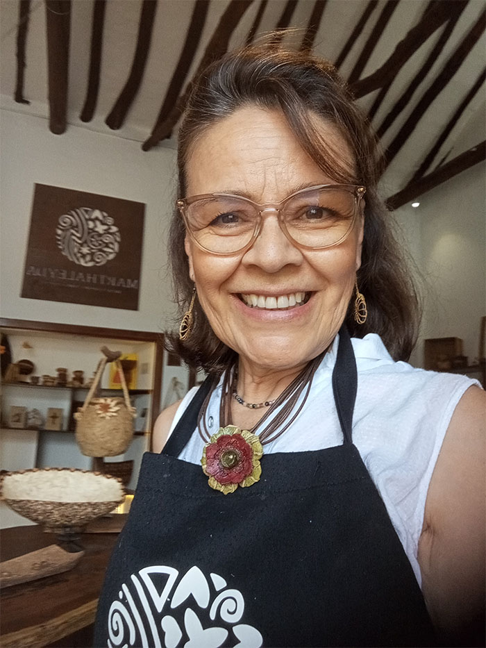 Martha Leyda Rivera Montoya es una diseñadora orgánica radicada en Barichara con una trayectoria de más de 15 años dedicada a la creación de arte y objetos utilitarios a partir de materiales 100% naturales.
