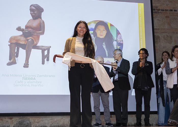 Escultora empírica y gestora cultural cuya obra nace de la intersección entre el territorio, la sostenibilidad y la identidad femenina rural. Con una práctica que transita entre la cordillera de Sandoná y la costa de Tumaco, Linares utiliza el arte como una herramienta de transformación social, trabajando de la mano con juventudes con discapacidad y comunidades vulnerables. Su propuesta se caracteriza por el uso de materiales recolectados de la naturaleza, integrando pigmentos orgánicos como el achiote y anilinas naturales. Fue galardonada con el Primer Premio en el VIII Salón BAT de Arte Popular por su obra “Tierra”, una pieza que encapsula la resiliencia afrodescendiente a través de la figura de una mujer y el fruto del chontaduro. En su trabajo, la cotidianidad se convierte en un homenaje a las tramas de resistencia que sostienen la vida en el Pacífico y el sur de Colombia. Más allá de la estética, su proceso creativo es un acto de preservación del saber ancestral y de respeto por los ciclos de la tierra. A través de talleres y procesos comunitarios, Ana Milena fomenta la creación artesanal como un espacio de inclusión donde la discapacidad no es una limitación, sino una sensibilidad distinta para moldear el entorno. Su búsqueda constante por materiales de bajo impacto ambiental reafirma un compromiso ético con el paisaje que habita, convirtiendo cada escultura en un puente que conecta la memoria colectiva de su natal Nariño con las nuevas generaciones.